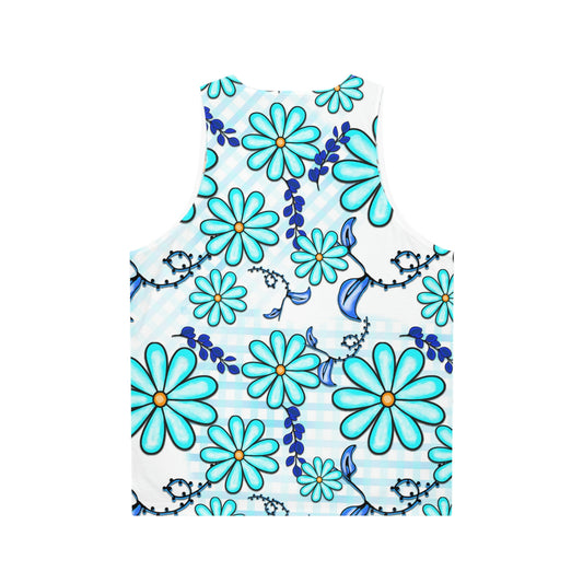 Blue Floral Daisy Unisex Style Tank Top Breezy Summer Casual Wear for Beach, Lake, Camping or Shopping, Stylish, Layer for Variety