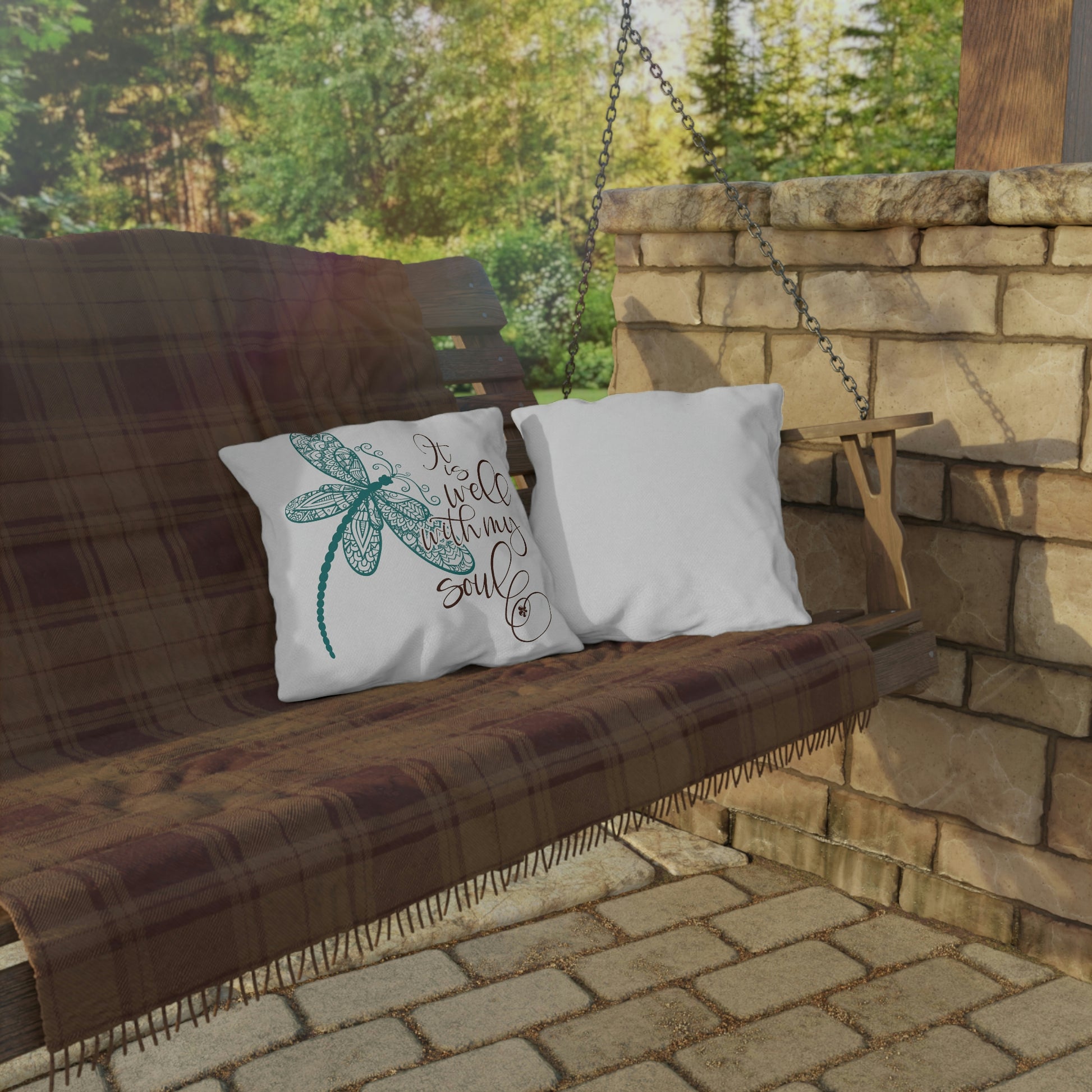 Dragonfly "It is Well With My Soul", COVER ONLY Perfect for Outdoor Living, Sun Room, Porch or Patio, Pool Side Lounging, Square Pillow